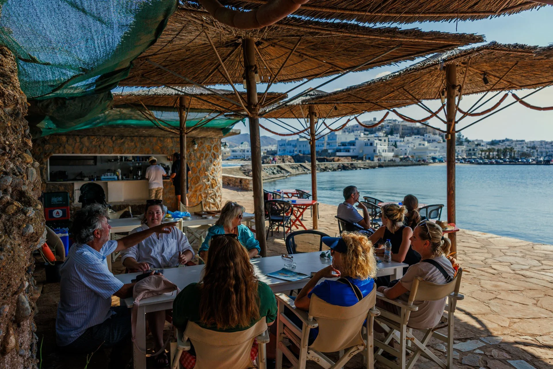 We are staying at Stella Apartments, right on the edge of the Aegean Sea. Plaka is one of Naxos’ most beautiful beaches—miles of soft sand, crystal-clear water, and a quiet rhythm that instantly slows your pulse.